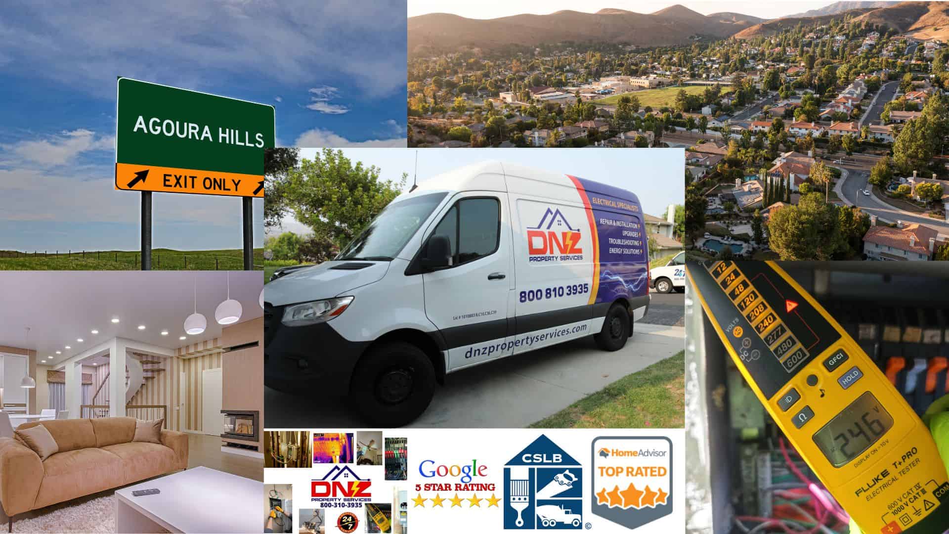 DNZ Electrical Services is a licensed electrical contractor based at 5627 Kanan Rd, Agoura Hills, CA right in the heart of the Conejo Valley. From here, our three fully-stocked service trucks cover most of LA County and Ventura County. We handle electrical panel upgrades, EV charger installation, 24/7 emergency electrical repair, outlet and wiring work, and all other residential and commercial electrical services across 17 cities and surrounding communities.